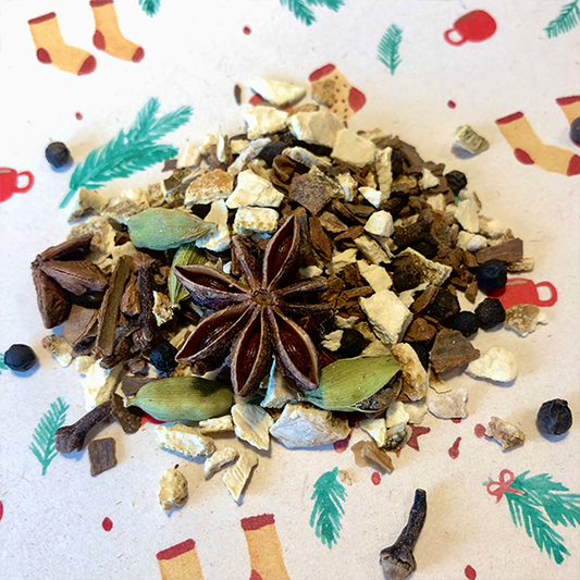 Zakje met Glühwein kruiden - willekeurige print, tht maart "25