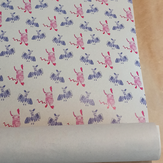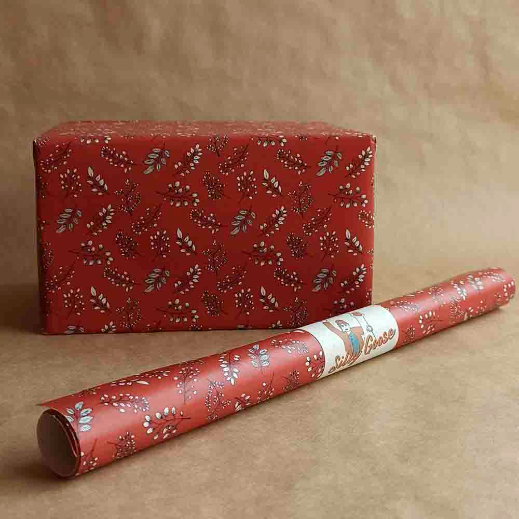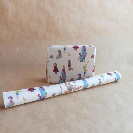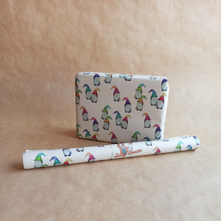 Ook het pakpapier is gedrukt op PaperWise papier. Er zijn rolletjes van 31 bij 69 cm op dun papier. De grotere rollen van 50 x 70 cm zijn gedrukt op iets dikker papier.